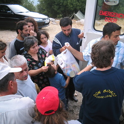 „Wir sind hier vor diesem traurigen Ort, an dem diese Explosion stattgefunden hat, dem Hafen von Beirut, wo so viele Menschen diese Welt verlassen haben, so viele Menschen noch vermisst werden, so viele verletzt sind, so viel Schaden für Beirut und für das ganze Land angerichtet wurden. Trotz dieser Zerstörung haben sich unsere salesianischen Jugendlichen der Diözese Jbeil und mit ihnen viele junge Muslime, junge Menschen im Libanon, freiwillig dazu gemeldet, bei der Reinigung der Straßen und Häuser von zerbrochenem Glas, Schutt und Asche, zu helfen.“